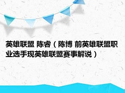 导读 目前是有很多朋友们对于陈博 前英雄联盟职业选手,现英雄联盟赛事解说这个信息比较感兴趣,那么小编也是收集了一些陈博 前英雄联盟职业选...
