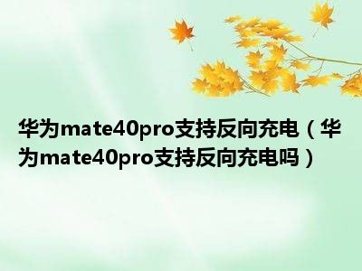 导读 1、华为mate40pro支持反向充电吗?2、华为mate40pro支持反向充电。其内置4400 mAh电池,可支持66W有线快充、50W无线充电和无线反向充电。3