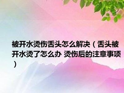 目前大家应该是对舌头被开水烫了怎么办 烫伤后的注意事项比较感兴趣的,所以今天小编CC就来为大家整理了一些关于舌头被开水烫了怎么办 烫伤后的注意事项方面的相关知识来分享给大家,希望大家会喜欢哦。