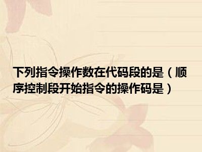 导读 1、顺序控制段开始指令的操作码是2、以plc为例,其顺序控制段开始指令的操作码是可控硅。一般PLC指的是“可编程逻辑控制器”。3、可编程逻