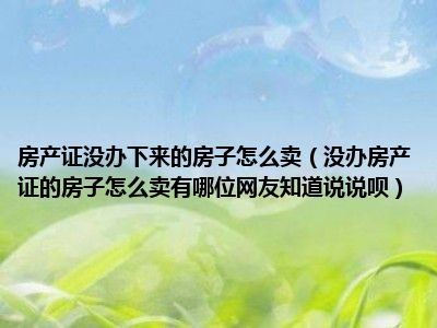 导读 目前大家应该是对没办房产证的房子怎么卖有哪位网友知道,说说呗比较感兴趣的,所以今天好房网小编CC就来为大家整理了一些关于没办房产证的