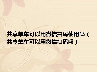 导读 1、共享单车可以用微信扫码吗2、自行车共享可以用微信扫码。自行车共享是指在校园、地铁站、公交站、住宅区、商业区、公共服务区等提供自行