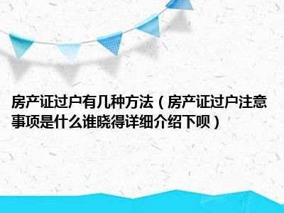 导读 目前大家应该是对房产证过户注意事项是什么谁晓得详细介绍下呗比较感兴趣的,所以今天好房网小编CC就来为大家整理了一些关于房产证过户注意