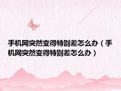 导读 1、手机网突然变得特别差怎么办2、手机突然变坏的解决方法如下:3、1 手机系统有问题,可以通过恢复网络设置来解决。4、2 SIM卡松了,再拔