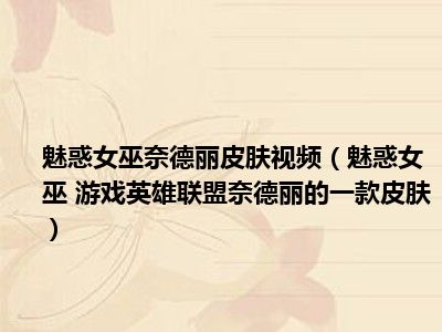 导读 目前是有很多朋友们对于魅惑女巫 游戏英雄联盟奈德丽的一款皮肤这个信息比较感兴趣,那么小编也是收集了一些魅惑女巫 游戏英雄联盟奈德丽...