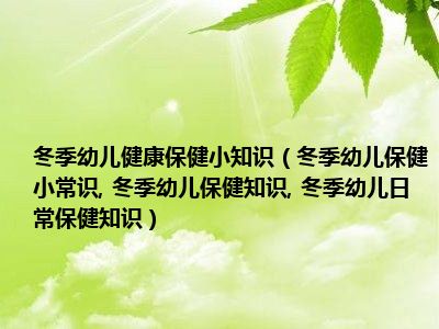 目前大家应该是对冬季幼儿保健小常识, 冬季幼儿保健知识, 冬季幼儿日常保健知识比较感兴趣的,所以今天小编CC就来为大家整理了一些关于冬季幼儿保健小常识, 冬季幼儿保健知识, 冬季幼儿日常保健知识方面的相关知识来分享给大家,希望大家会喜欢哦。