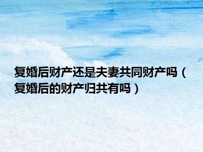 目前大家应该是对复婚后的财产归共有吗比较感兴趣的,所以今天CC就来为大家整理了一些关于复婚后的财产归共有吗方面的相关知识来分享给大家,希望大家会喜欢哦。