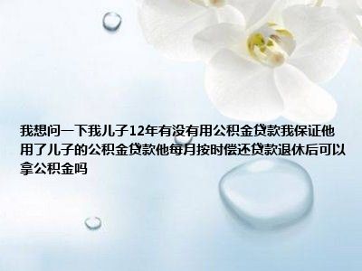 导读 目前大家应该是对我想问下儿子12年用公积金贷款,我给他担保是用儿子公积金贷款的,他每月按时还贷,我退休后可以取公积金吗比较感兴趣的,