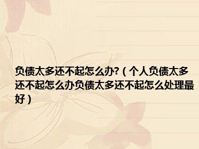 目前大家应该是对个人负债太多还不起怎么办负债太多还不起怎么处理最好比较感兴趣的,所以今天CC就来为大家整理了一些关于个人负债太多还不起怎么办负债太多还不起怎么处理最好方面的相关知识来分享给大家,希望大家会喜欢哦。