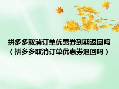 导读 1、拼多多取消订单优惠券退回吗2、拼多多不能取消订单。如果团体失败,优惠券将被退回,但优惠券的使用期限将保持不变。3、拼多多是由上海