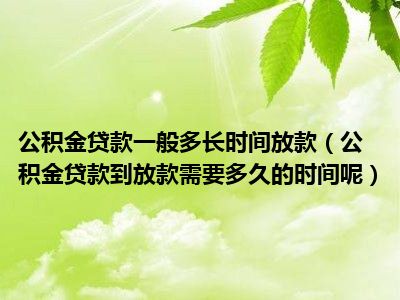 导读 目前大家应该是对公积金贷款到放款需要多久的时间呢比较感兴趣的,所以今天好房网小编CC就来为大家整理了一些关于公积金贷款到放款需要多久
