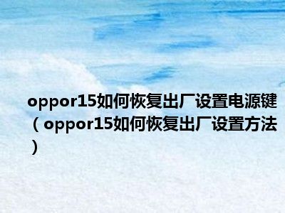 导读 1、oppor15如何恢复出厂设置方法?2、1 单击设置菜单中的[其他设置]。3、2 单击[恢复手机]。4、3 单击[仅恢复系统设置]。5、4 如果想清空手