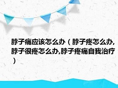 目前大家应该是对脖子疼怎么办,脖子很疼怎么办,脖子疼痛自我治疗比较感兴趣的,所以今天小编CC就来为大家整理了一些关于脖子疼怎么办,脖子很疼怎么办,脖子疼痛自我治疗方面的相关知识来分享给大家,希望大家会喜欢哦。