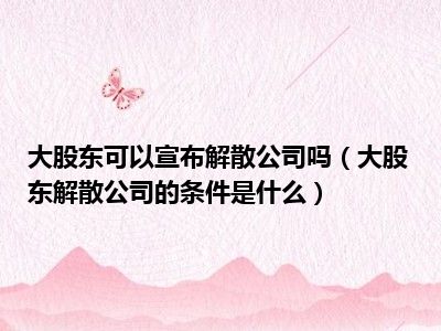 目前大家应该是对大股东解散公司的条件是什么比较感兴趣的,所以今天CC就来为大家整理了一些关于大股东解散公司的条件是什么方面的相关知识来分享给大家,希望大家会喜欢哦。