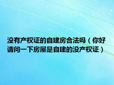 导读 目前大家应该是对你好!请问一下房屋是自建的没产权证比较感兴趣的,所以今天好房网小编CC就来为大家整理了一些关于你好!请问一下房屋是自