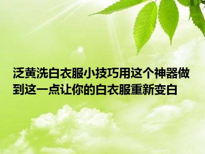 目前大家应该是对白衣服发黄洗白小窍门,用这个神器这样做,让你的白衣回归洁白!比较感兴趣的,所以今天小编CC就来为大家整理了一些关于白衣服发黄洗白小窍门,用这个神器这样做,让你的白衣回归洁白!方面的相关知识来分享给大家,希望大家会喜欢哦。