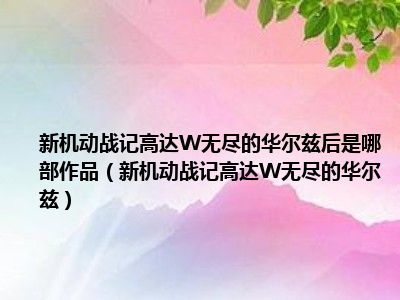 导读目前是有很多朋友们对于新机动战记高达W:无尽的华尔兹这个信息比较感兴趣,那么小编也是收集了一些新机动战记高达W:无尽的华尔兹相关的信...