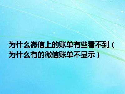 导读 1、为什么有的微信账单不显示2、可能是手机网卡或者微信卡了,也可能是服务器延迟了,可以稍后再试,或者关闭微信重启微信试试。3、微信(We