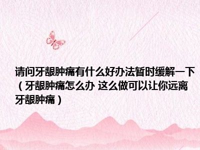 目前大家应该是对牙龈肿痛怎么办 这么做可以让你远离牙龈肿痛比较感兴趣的,所以今天小编CC就来为大家整理了一些关于牙龈肿痛怎么办 这么做可以让你远离牙龈肿痛方面的相关知识来分享给大家,希望大家会喜欢哦。