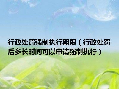 目前大家应该是对行政处罚后多长时间可以申请强制执行比较感兴趣的,所以今天CC就来为大家整理了一些关于行政处罚后多长时间可以申请强制执行方面的相关知识来分享给大家,希望大家会喜欢哦。