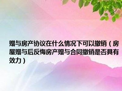 目前大家应该是对房屋赠与后反悔房产赠与合同撤销是否具有效力比较感兴趣的,所以今天CC就来为大家整理了一些关于房屋赠与后反悔房产赠与合同撤销是否具有效力方面的相关知识来分享给大家,希望大家会喜欢哦。