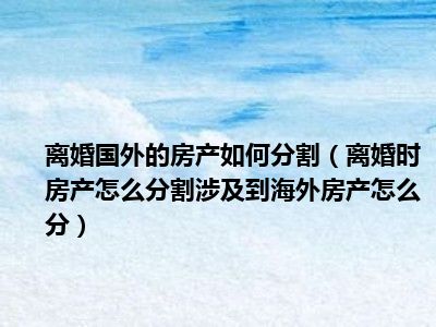 目前大家应该是对离婚时房产怎么分割,涉及到海外房产怎么分比较感兴趣的,所以今天CC就来为大家整理了一些关于离婚时房产怎么分割,涉及到海外房产怎么分方面的相关知识来分享给大家,希望大家会喜欢哦。