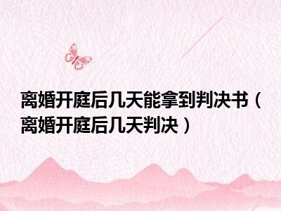 目前大家应该是对离婚开庭后几天判决比较感兴趣的,所以今天CC就来为大家整理了一些关于离婚开庭后几天判决方面的相关知识来分享给大家,希望大家会喜欢哦。