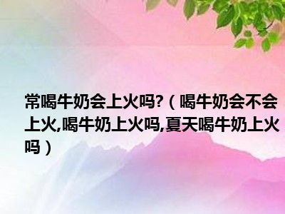 目前大家应该是对喝牛奶会不会上火,喝牛奶上火吗,夏天喝牛奶上火吗比较感兴趣的,所以今天小编CC就来为大家整理了一些关于喝牛奶会不会上火,喝牛奶上火吗,夏天喝牛奶上火吗方面的相关知识来分享给大家,希望大家会喜欢哦。
