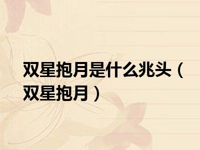 导读目前是有很多朋友们对于双星抱月这个信息比较感兴趣,那么小编也是收集了一些双星抱月相关的信息来分享给大家,希望你会喜欢哦。1、双星...