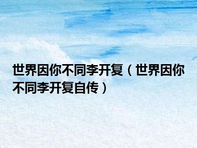 导读 目前是有很多朋友们对于世界因你不同:李开复自传这个信息比较感兴趣,那么小编也是收集了一些世界因你不同:李开复自传相关的信息来分享给