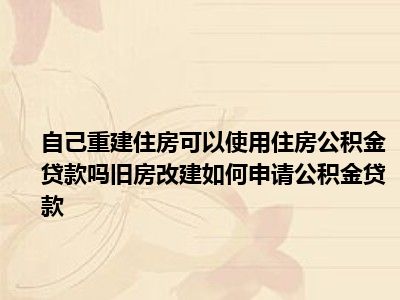 导读 目前大家应该是对自己翻建房子可以用住房公积金贷款吗翻建旧房怎样才能办理公积金贷款比较感兴趣的,所以今天好房网小编CC就来为大家整