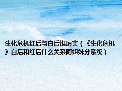 目前应该是有很多小伙伴对于《生化危机》白后和红后什么关系阿姐妹分系统方面的信息比较感兴趣,现在小编就收集了一些与《生化危机》白后和红后什么关系阿姐妹分系统相关的信息来分享给大家,感兴趣的小伙伴可以接着往下看,希望会帮助到你哦。