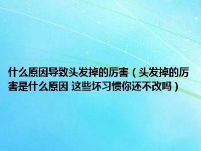 目前大家应该是对头发掉的厉害是什么原因 这些坏习惯你还不改吗比较感兴趣的,所以今天小编CC就来为大家整理了一些关于头发掉的厉害是什么原因 这些坏习惯你还不改吗方面的相关知识来分享给大家,希望大家会喜欢哦。