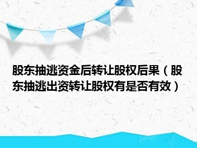目前大家应该是对股东抽逃出资转让股权有是否有效比较感兴趣的,所以今天CC就来为大家整理了一些关于股东抽逃出资转让股权有是否有效方面的相关知识来分享给大家,希望大家会喜欢哦。