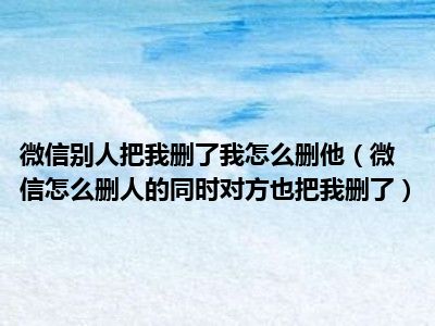 导读 1、微信怎么删人的同时对方也把我删了2、你删除了对方,但是这个人不在你的通讯录里,而你还在对方的通讯录里;除非对方把你从通讯录里删掉