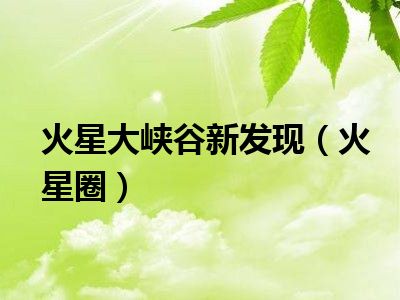 导读 目前是有很多朋友们对于火星圈这个信息比较感兴趣,那么小编也是收集了一些火星圈相关的信息来分享给大家,希望你会喜欢哦。