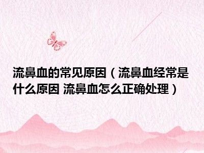 目前大家应该是对流鼻血经常是什么原因 流鼻血怎么正确处理比较感兴趣的,所以今天小编CC就来为大家整理了一些关于流鼻血经常是什么原因 流鼻血怎么正确处理方面的相关知识来分享给大家,希望大家会喜欢哦。