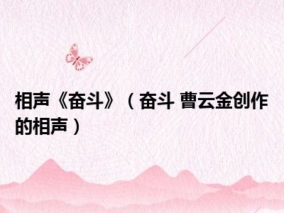 1、《奋斗》是由曹云金创作,曹云金、刘云天表演的相声,于2012年1月22日在《2012年中央电视台春节联欢晚会》上播出。