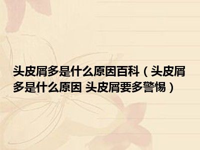 目前大家应该是对头皮屑多是什么原因 头皮屑要多警惕比较感兴趣的,所以今天小编CC就来为大家整理了一些关于头皮屑多是什么原因 头皮屑要多警惕方面的相关知识来分享给大家,希望大家会喜欢哦。
