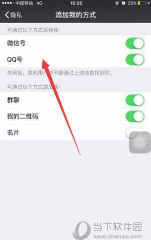 这个时候,会看到通过QQ号搜索到我,后面有一个选择项,如图,不打勾的,为不关联。打勾的关联。这里可以将对方的QQ挂上。