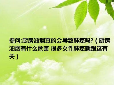 目前大家应该是对厨房油烟有什么危害 很多女性肺癌就跟这有关比较感兴趣的,所以今天小编CC就来为大家整理了一些关于厨房油烟有什么危害 很多女性肺癌就跟这有关方面的相关知识来分享给大家,希望大家会喜欢哦。