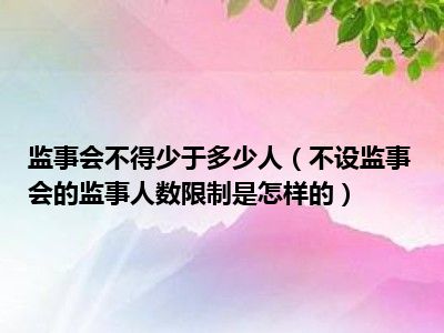 目前大家应该是对不设监事会的监事人数限制是怎样的比较感兴趣的,所以今天CC就来为大家整理了一些关于不设监事会的监事人数限制是怎样的方面的相关知识来分享给大家,希望大家会喜欢哦。