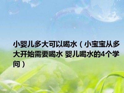 目前大家应该是对小宝宝从多大开始需要喝水 婴儿喝水的4个学问比较感兴趣的,所以今天小编CC就来为大家整理了一些关于小宝宝从多大开始需要喝水 婴儿喝水的4个学问方面的相关知识来分享给大家,希望大家会喜欢哦。