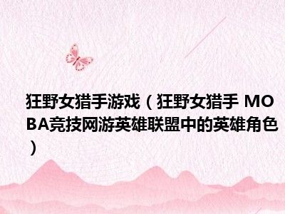 导读 目前是有很多朋友们对于狂野女猎手 MOBA竞技网游英雄联盟中的英雄角色这个信息比较感兴趣,那么小编也是收集了一些狂野女猎手 MOBA竞技网...