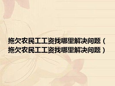 目前大家应该是对拖欠农民工工资找哪里解决问题比较感兴趣的,所以今天CC就来为大家整理了一些关于拖欠农民工工资找哪里解决问题方面的相关知识来分享给大家,希望大家会喜欢哦。