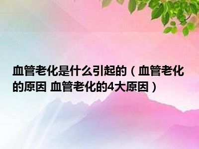 目前大家应该是对血管老化的原因 血管老化的4大原因比较感兴趣的,所以今天小编CC就来为大家整理了一些关于血管老化的原因 血管老化的4大原因方面的相关知识来分享给大家,希望大家会喜欢哦。