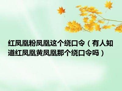 目前应该是有很多小伙伴对于有人知道红凤凰黄凤凰那个绕口令吗方面的信息比较感兴趣,现在小编就收集了一些与有人知道红凤凰黄凤凰那个绕口令吗相关的信息来分享给大家,感兴趣的小伙伴可以接着往下看,希望会帮助到你哦。