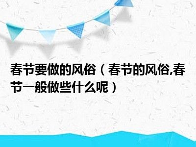 目前大家应该是对春节的风俗,春节一般做些什么呢比较感兴趣的,所以今天小编CC就来为大家整理了一些关于春节的风俗,春节一般做些什么呢方面的相关知识来分享给大家,希望大家会喜欢哦。