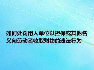 导读目前大家应该是对用人单位违法以担保或者其他名义向劳动者收取财物的行为怎么进行处罚呢比较感兴趣的,所以今天CC就来为大家整理了一些关于...