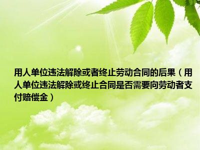 目前大家应该是对用人单位违法解除或终止合同是否需要向劳动者支付赔偿金比较感兴趣的,所以今天CC就来为大家整理了一些关于用人单位违法解除或终止合同是否需要向劳动者支付赔偿金方面的相关知识来分享给大家,希望大家会喜欢哦。